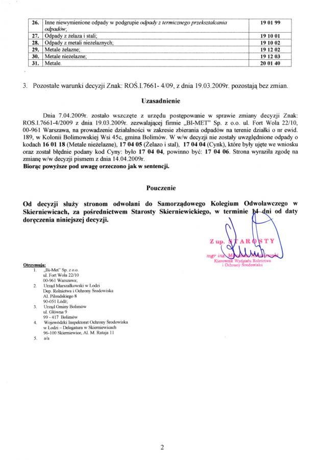 Decyzja 385 OŚ 2009 w sprawie transportu i zbierania odpadów